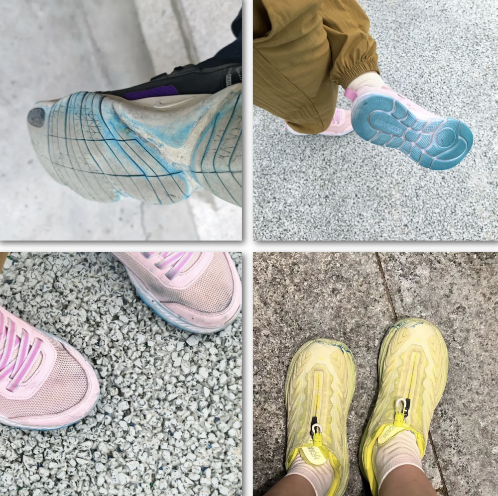 网友们反映跑后鞋底被染色。图据通州早知道微信公众号